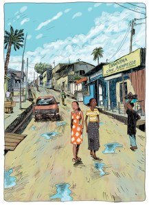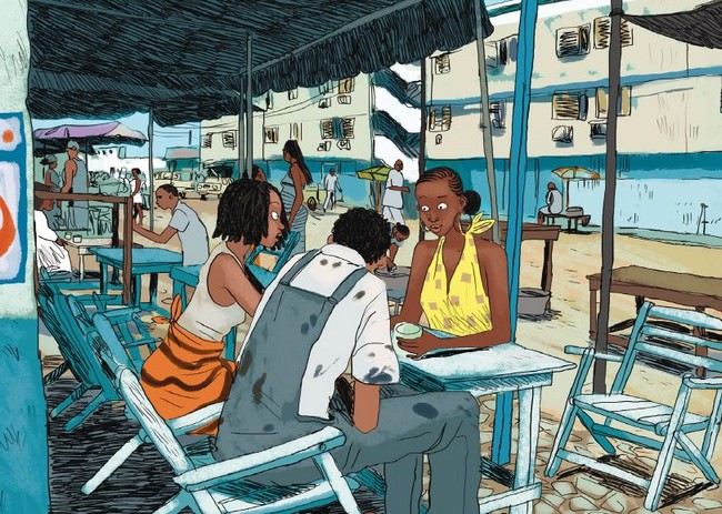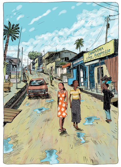 Tout comme Guy Delisle qui s’immisce dans le quotidien des gens d’une partie du monde,Marguerite Abouet nous fait partager la vie des habitants d’un pays qu’elle a dû quitter à l’âge de quatorze ans. On y sent une fierté mêlée à une certain nostalgie – l’inévitable mal du pays.