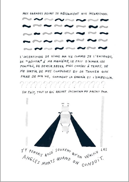 On doit regarder en avant quand ça va mal comme le dit sa mère ; au loin pour mieux anticiper comme l’explique son père. Quitter son foyer pour aller étudier à Montréal — cette ville où les gens marchent trop vite — fut un dur coup pour la jeune femme et c’est à force d’allers-retours le long de la Transcanadienne qu’elle se procure sa dose de réconfort : sa famille à l’est et sa blonde à l’ouest. Ce n’est qu’un au revoir alors que parfois c’est des adieux à des êtres chers.