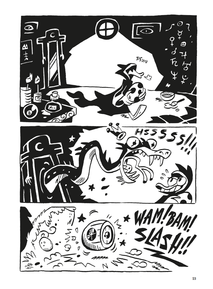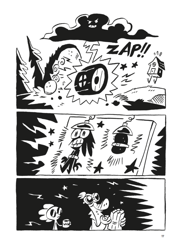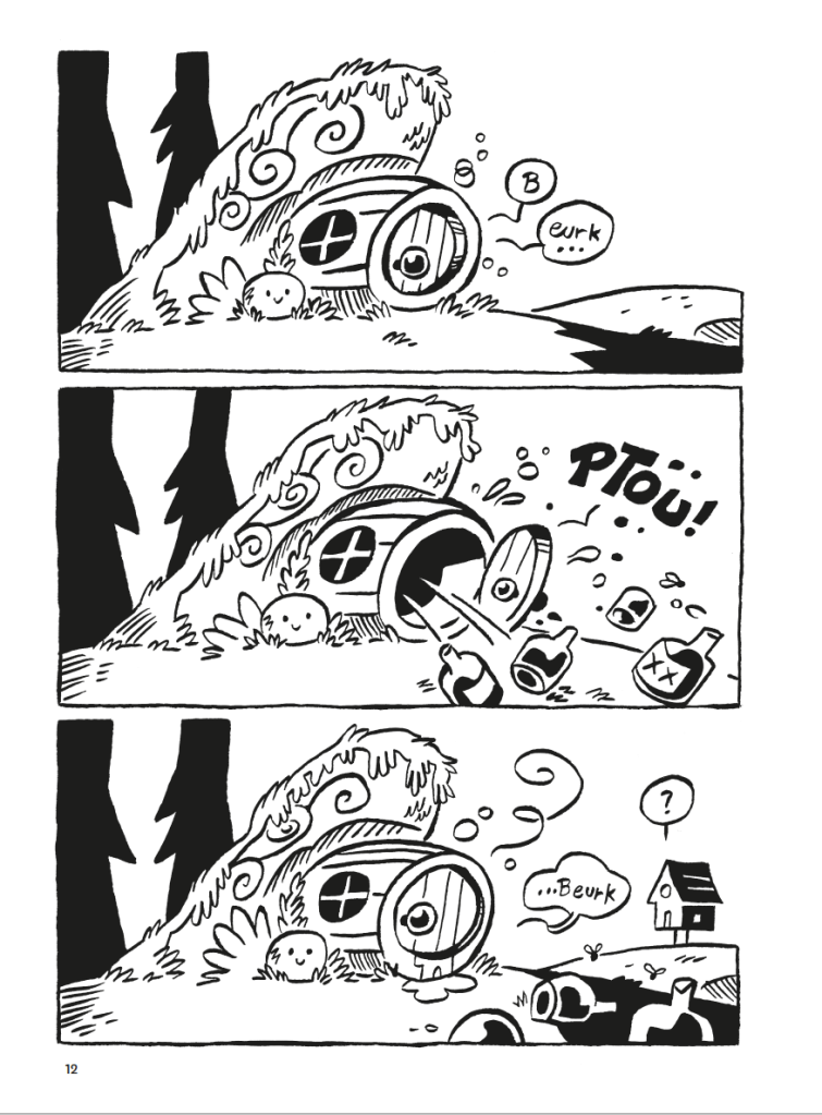 Pour ce deuxième album, Thom a décidé de suivre la formule gagnante de sa première création VII. En très peu de mots (des onomatopées), il réussit à instiguer des dialogues fictifs sans équivoque entre ses personnages. Cette économie de mots est magnifiée par des planches truffées de détails et de clins d’œil nous invitant à entrer dans l’univers du bédéiste à l’imagination débridée. Comme un film muet ou un épisode des Looney Tunes, les ressorts comiques empruntés fonctionnent à merveille. L’humour noir et burlesque procure un goût de revenez-y en ajoutant une couche d’absurdité à une histoire déjà tordue où il fait bon y retourner… comme à la maison.