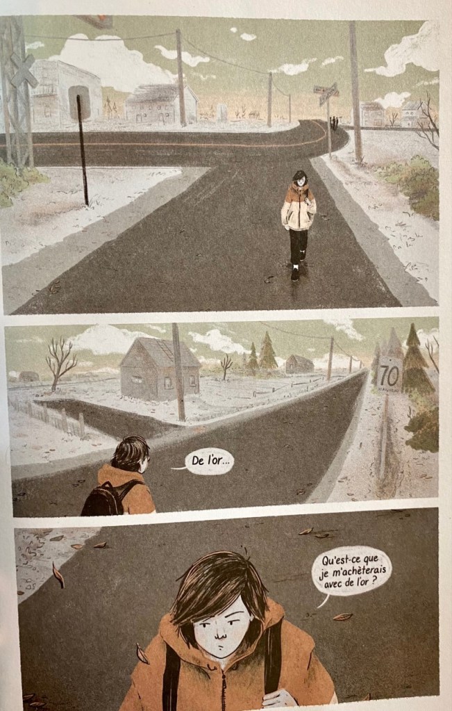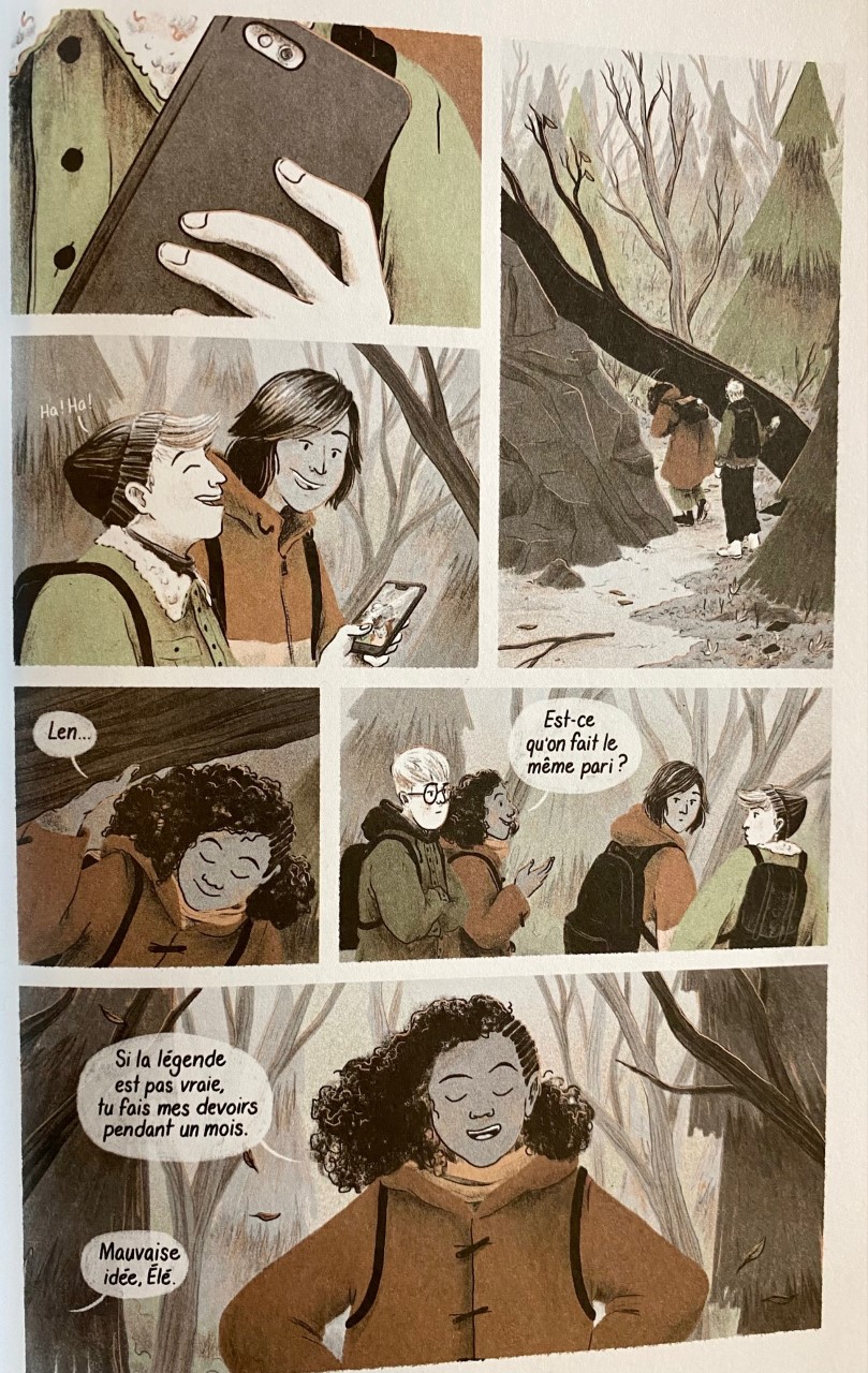 C’est une belle promenade douce-amère que cette aventure en forêt en compagnie de personnages fort attachants. On y trouve une intrigue bien ficelée où l’on coche beaucoup de cases rendant la lecture captivante. C’est comme revenir à la maison. Un classique mis au goût du jour. Dans des teintes ferreuses où coexiste le gris cendre, on peut presque sentir l’odeur de roussi et nos poumons se comprimer sous l’effet des émanations toxiques. Difficile à croire que Geneviève Bigué en est à ses premières armes dans le milieu de la bande dessinée. Les autres n’ont qu’à bien se tenir.
