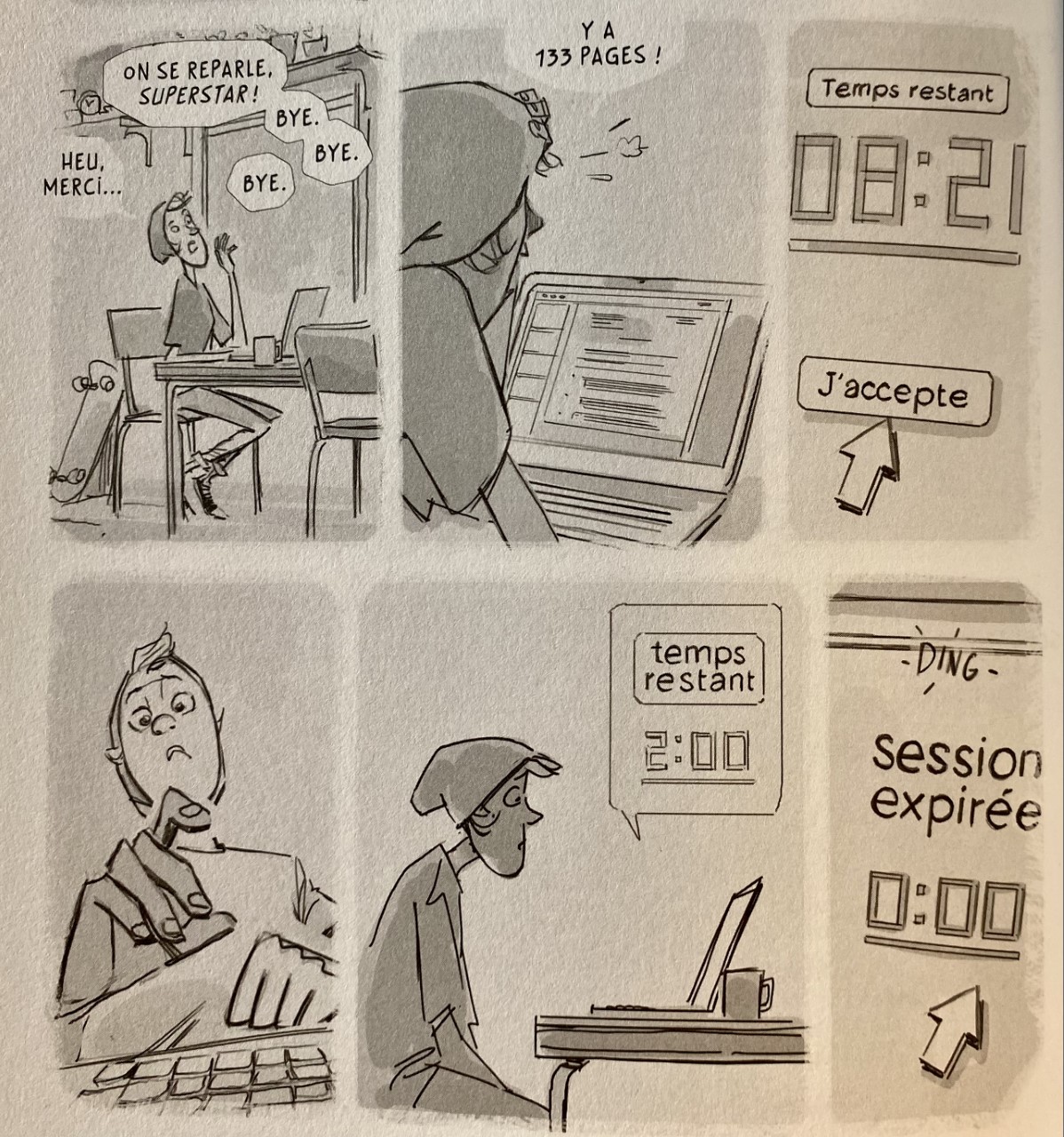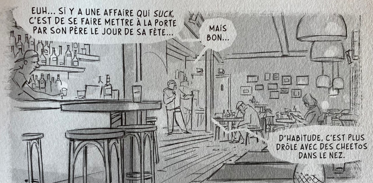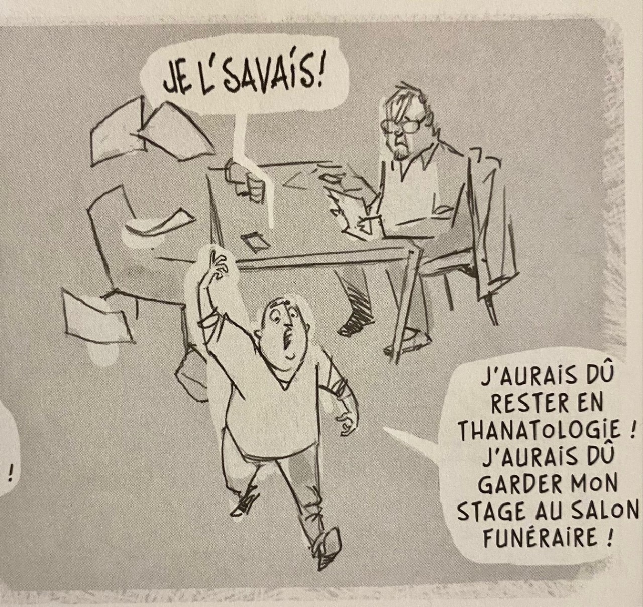Jean Lacombe jette un regard plein de candeur et sans malice sur le milieu de l’humour en nous exposant l’envers du décor. Les personnages principaux ont beau être fictifs, les observateurs reconnaîtront des visages familiers tout au long du récit. On rit parfois jaune et on a vite fait de comprendre que ce n’est pas une sinécure que d’écrire des blagues et de se tailler une place. Cette bande dessinée plaira autant aux connaisseurs qui s’amuseront à pointer les caméos qu’à ceux de passage pour rigoler et en apprendre un peu plus sur le métier.