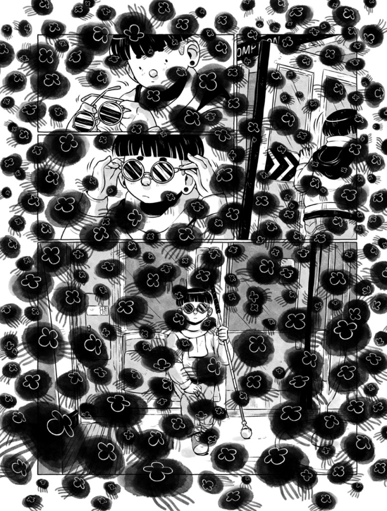 C’est un bien beau récit en dents de scie que celui de La méduse. Il a d’autant plus de résonance lorsqu’on apprend que Boum aka Samantha Leriche-Gionet a récemment perdu partiellement l’usage de sa vision dans des conditions similaires. Il n’y a pas d’atermoiement ni de violon mélancolique, juste une bitter sweet symphony. Un gros pouce en l’air pour le traitement graphique qui magnifie l’expérience de lecture. Les petits Easter Eggs — clins d’œil en jargon de gamer — permettent de cerner les goûts et influences culturelles de Samantha. Une BD qui rallie les troupes en offrant la totale : style, histoire, émotion. Elle y a mis le paquet et ça paraît !