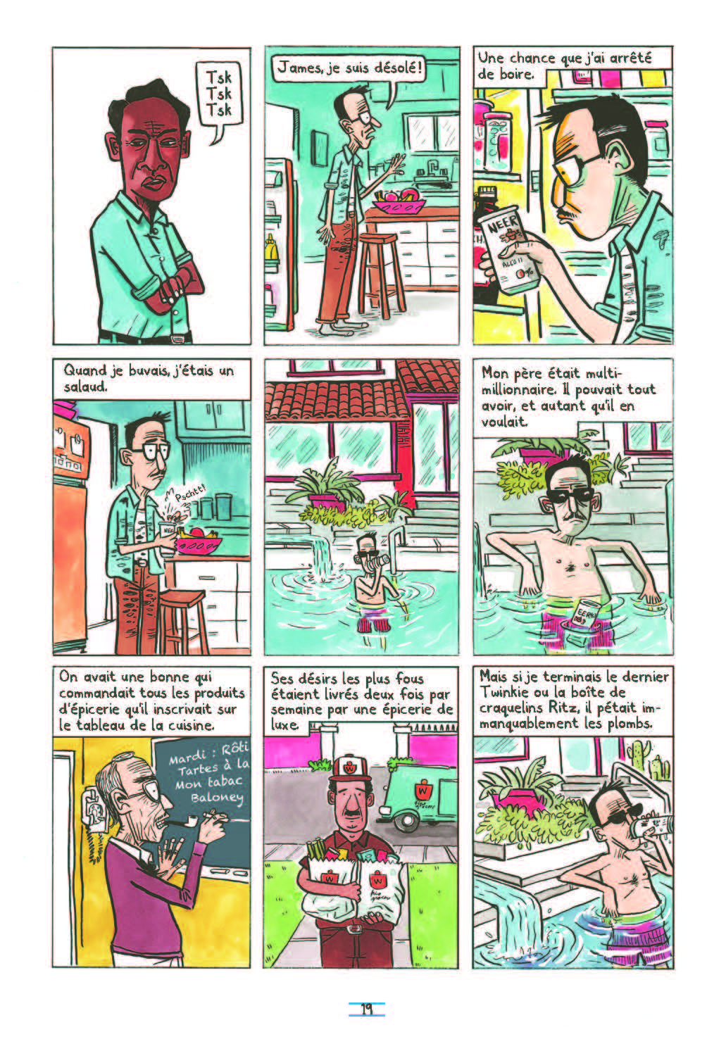 Joe Ollmann qui est reconnu pour faire l’apologie de la trivialité et ses personnages plus grands que nature ne déçoit pas avec cette œuvre qui touche droit au cœur. On y souffle le chaud et le froid, explorant les coins sombres de l’âme humaine pour essayer de faire la lumière sur les liens tordus de cet amour filial dysfonctionnel. On rit — parfois jaune — et on se prend au jeu de se faire l’avocat du diable dans cette tragicomédie. C’est cru, grossier et haut en couleur tout comme le trait de crayon de l’auteur dont le daltonisme ajoute un rendu particulier.