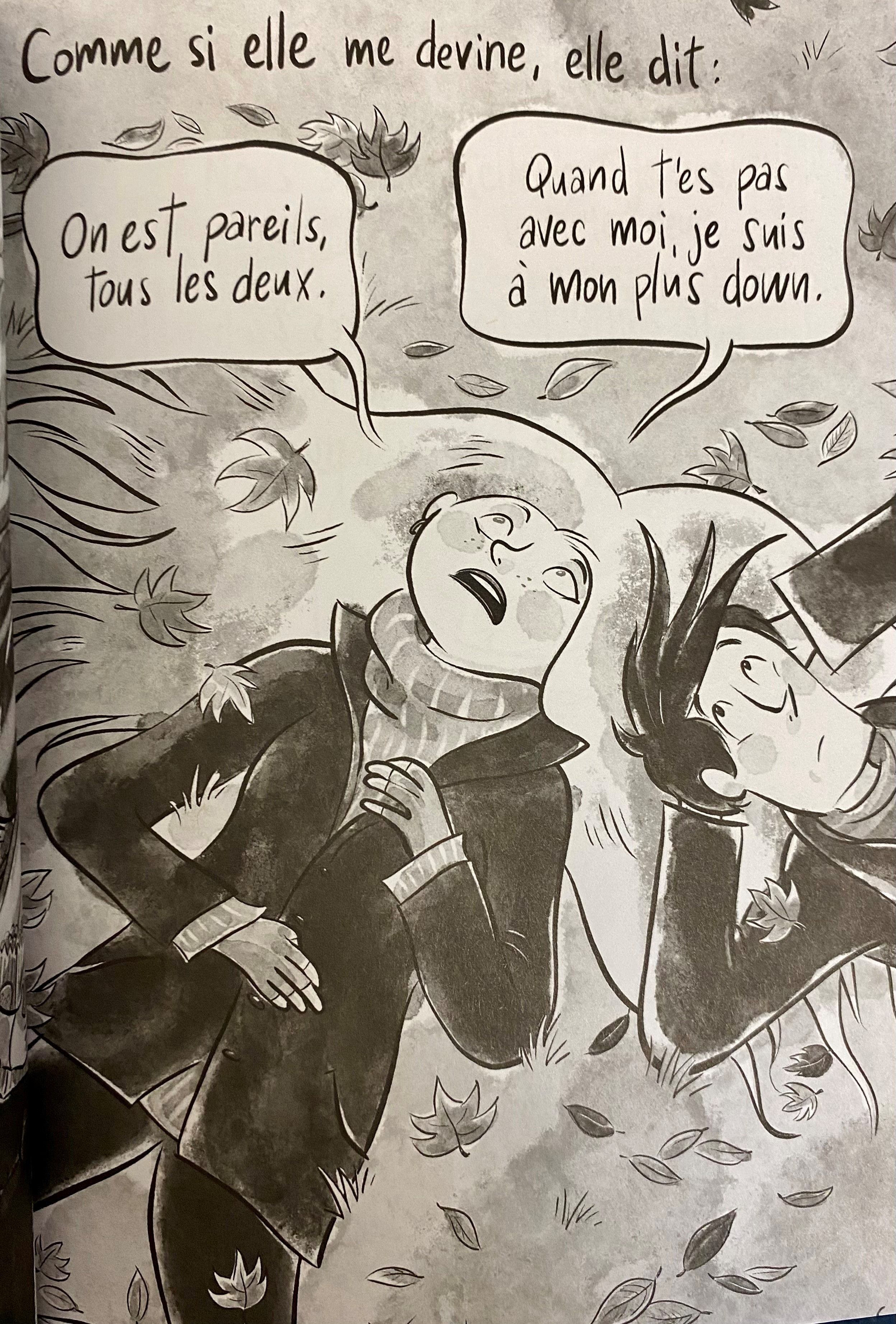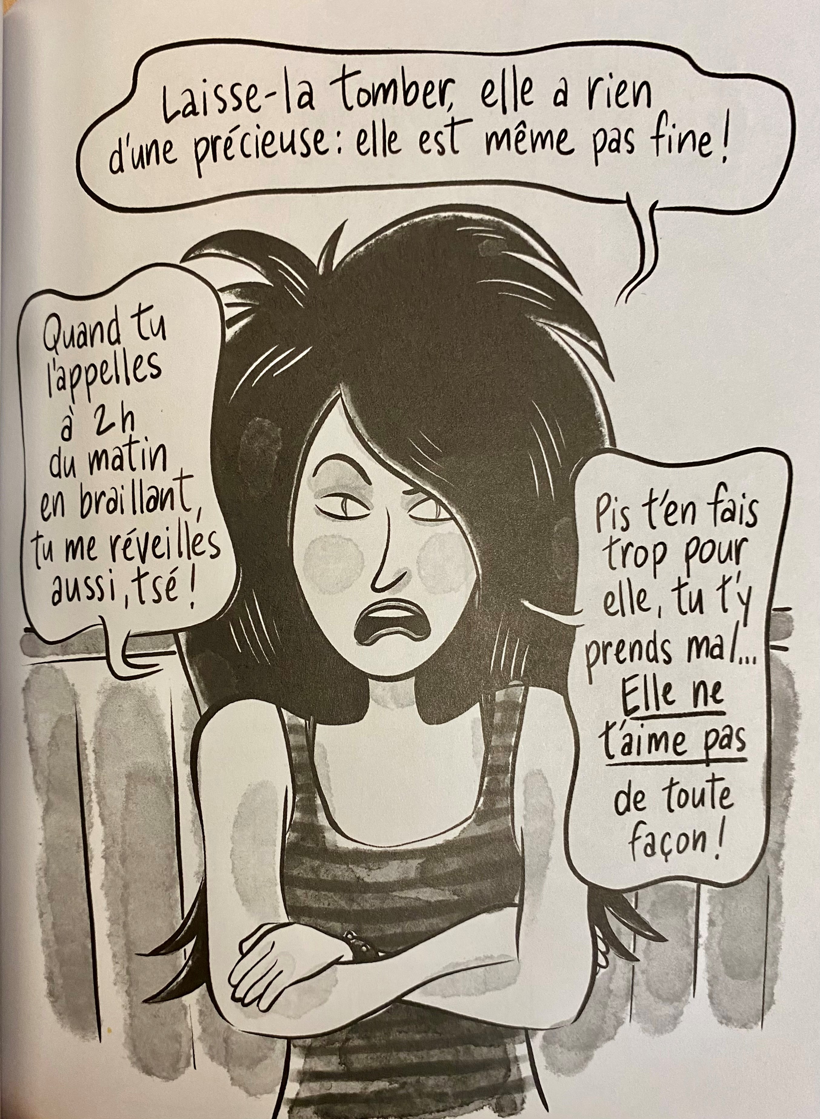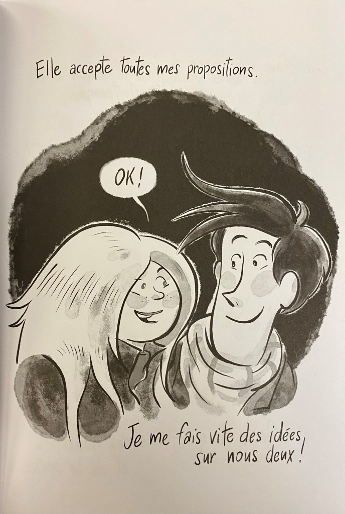Toutes ces montagnes russes émotionnelles sont certes grisantes, mais elles peuvent parfois donner mal au cœur. Il y a dans la fougue des premières passions un abandon et un émerveillement qui jamais ne sera reproductible ; on ne peut que rire ou être attendri par tant de naïveté. Chez ceux qui l’ont vécu, il demeure des traces fugaces de cette expérience transformatrice à laquelle on se réfère périodiquement pour se remémorer des souvenirs polis par la patine du temps. Cela devient à notre insu l’étalon de mesure auquel nos autres relations seront soupesées. Est-ce une façon saine d’occuper ses moments libres que de se triturer les méninges à savoir si on est sur la trajectoire établit ? Combien de nuits blanches à se morfondre ? De rêves évocateurs énonçant ce que l’on ne voulait pas entendre ? Beaucoup d’encre et de larmes ont coulé dans le journal intime de ce bon gars à l’oreille attentive et aux bras réconfortants. Assez pour en faire une bande dessinée.