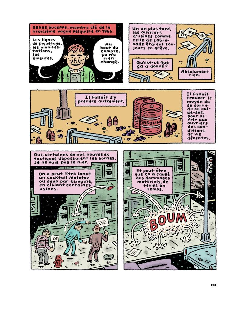On a droit à une interprétation des faits juste et impartiale de la part du fondateur de Drawn & Quartely dont le travail de recherche est minutieusement fouillé. L’allure de faux documentaire laisse la liberté à l’auteur de rendre le sujet moins aride et le style graphique rétro aux couleurs délavées colle parfaitement à l’époque pour former un tout cohérent. Une lecture éclairante et divertissante pour mieux comprendre.