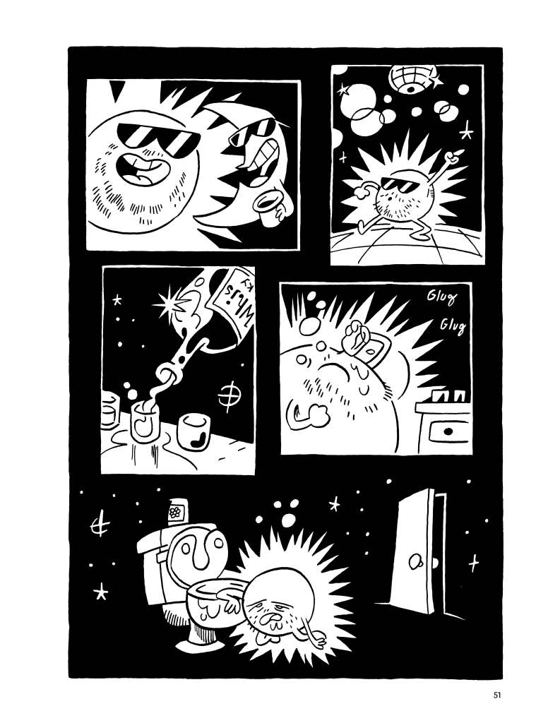 On échafaude donc un plan pour mettre un terme au roupillon de Galarneau. Il faut faire un max de bruit pour le tirer de son coma éthylique. Ce ne sera pas facile puisque les gens crèvent à qui mieux mieux. Le tout culmine par un concert – non, pas de KC and the Sunshine Band – digne d’un cartoon de Bugs Bunny (google it, les jeunes.) Vont-ils réussir à faire rire les oiseaux et danser les écureuils ? On vas-tu avoir une belle été c’t’année ? Ça lui apprendra à faire le party avec la voie maltée.