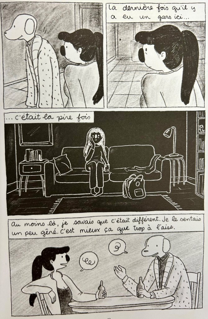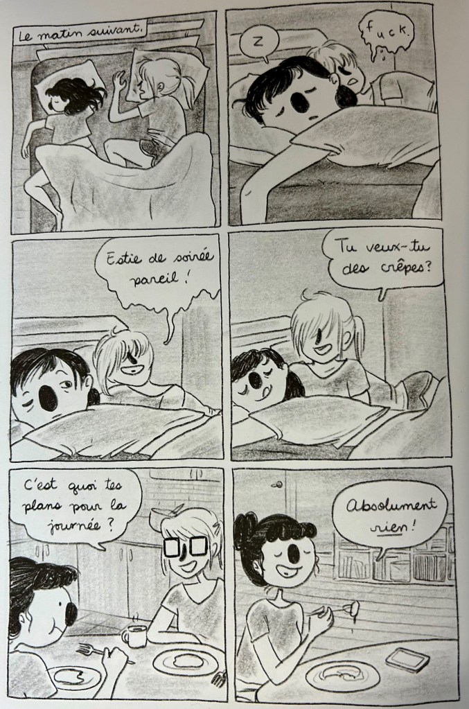 Métro, boulot, dodo… littéralement. Martha ne cherche pas le trouble, mais c’est lui qui l’a trouvé un dimanche de Pâques bien arrosé : un ami d’un ami. Des liens se sont noués et une proximité s’est installée rapidement. Un cocon s’est filé, chaud et confortable ; le genre d’endroit d’où on ne voudrait jamais sortir. Puis du jour au lendemain, elle tombe des nues, décontenancée par la tournure des événements qui la laisse empêtrée dans un tissu de mensonges. S’est-elle trompée sur ses intentions ? Elle n’obtiendra pas de réponse avant son retour de voyage outre-mer — il est parti à la dérobée sans même lui envoyer un texto — vraiment, dude ?! Son estime en prend un coup, elle qui est toujours chambranlante à la suite d’une autre relation toxique qui a duré trop longtemps. Qu’à cela ne tienne, sa babe est là pour lui rappeler qu’on s’en torche et qu’elle n’a pas besoin de s’embarquer dans des histoires de cœur si c’est pour que celui-ci finisse en charpie. Le selfcare ce n’est pas fait pour les chiens. En avant les pichets et les shooters, partons à la chasse aux potins et profitons-en pour se trémousser le popotin jusqu’au petites heures du matin. Hang over et promiscuité assurés. Ça met un baume sur le bobo, mais ça fait encore mal.