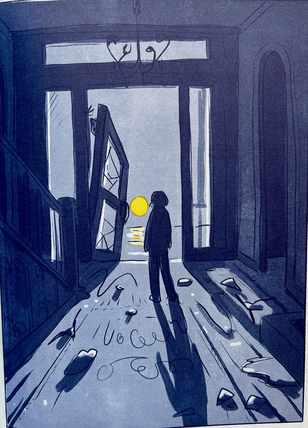 Des borborygmes s’échappent de la bouche du rescapé drapé sur le canapé. Un relent du passé flotte dans l’air salin. Ce grand gaillard hirsute semble connaître les lieux alors que ceux-ci s’éveillent lorsqu’il déambule le long des corridors au papier peint défraîchi. Quelle est la raison de sa présence ? Il erre sans but, cloîtré dans son mutisme. Cette impression de déjà-vu sème une onde de choc parmi les occupantes. La vérité éclate et consume tout sur son passage tandis que fusionnent les époques, laissant un trou béant dans cette demeure réduite en poussière.