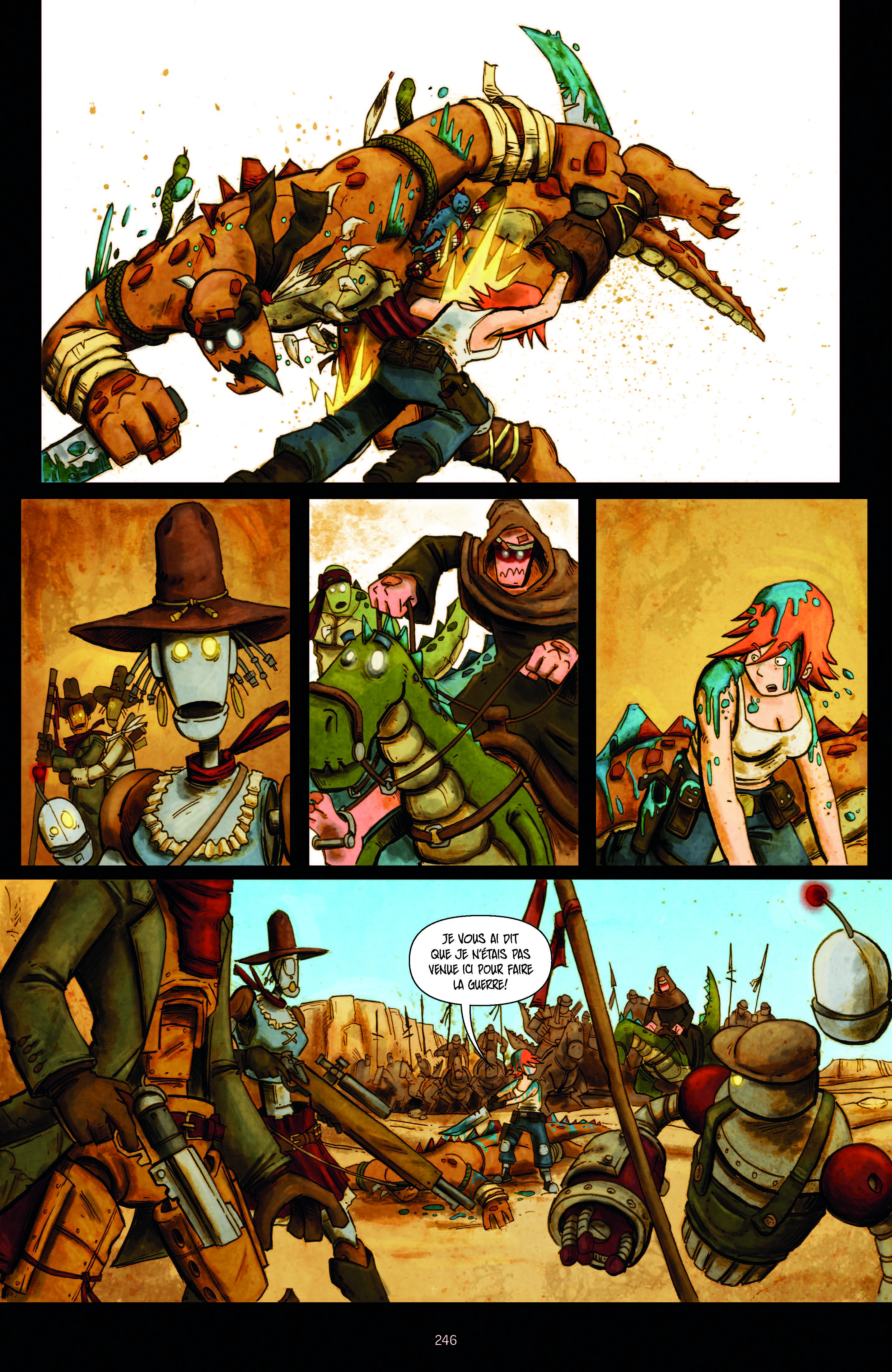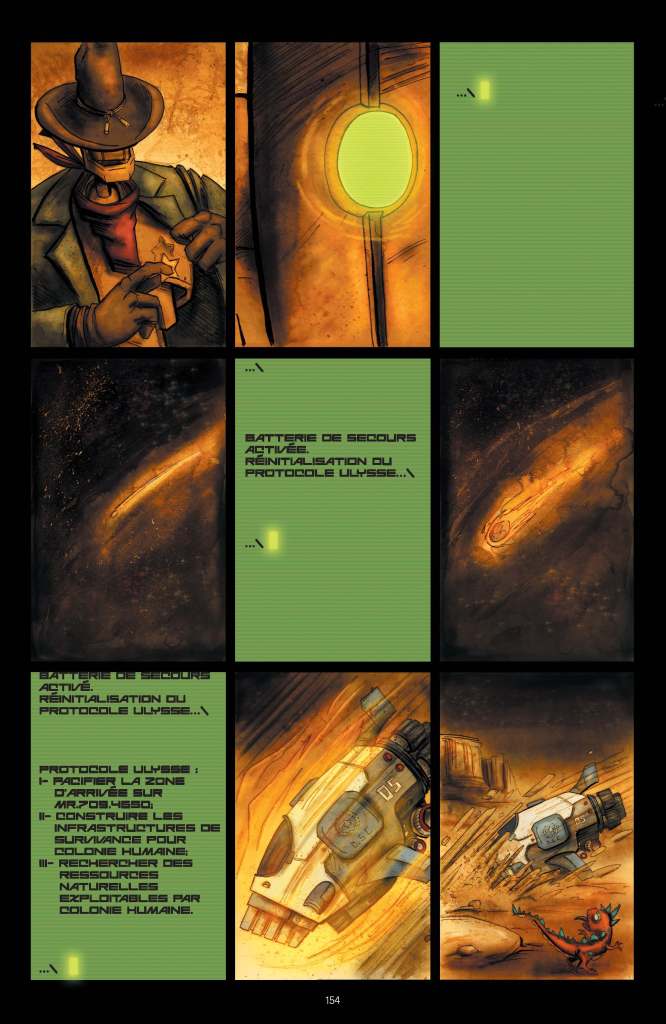 Maintes fois encensé, le travail d’Olivier Carpentier (dessins) et Gautier Langevin (textes) offre une chevauchée à bride abattue à travers les genres. À la frontière du western et de la science-fiction, les deux buckaroos ont su harnacher la puissance narrative de styles diamétralement opposés, mais complémentaires. Bourré d’action, parsemé d’humour et un brin philosophique, tout le monde y trouve son compte. Atmosphériques à souhait, les planches et les paysages qu’elles contiennent goûtent la poussière tourbillonnant au passage de la caravane. Levons-leur notre chapeau de cowboy bien haut en tirant du pistolet laser avant de disparaître à l’horizon. Yee-Haw !