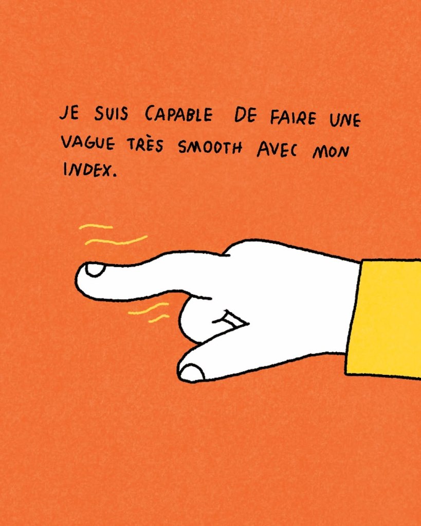 Une très belle mise en bouche de Floramaille qui a su tirer son épingle du jeu malgré un sujet éculé. On ne se lasse pas de ses prises de position sur des questions aussi sérieuses que la sorte de céréales idéales dans lesquelles prendre son bain. Les couleurs chatoyantes aux accents de psychédélisme mêlées aux dessins presque naïfs collent bien à sa personnalité. Sous des airs badins, on traite ici de thèmes intemporels qui nous interpellent à tout âge. Deux interrogations demeurent : primo, pourquoi les bonhommes ne portent-ils pas de chaussures et secundo, se passe-t-elle toujours le fil dentaire ?