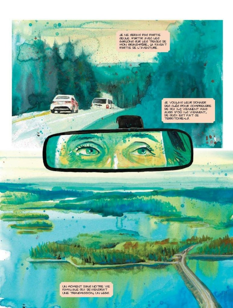 C’est gros, c’est grand, ça frappe l’imaginaire ; un éclair de génie pour certains alors que pour d’autres, ce fut un choc brutal. La Baie James, c’est plus qu’un réseau de barrages, c’est aussi un territoire ancestral en partie enseveli. Pour la journaliste chevronnée, l’attrait est décuplé. Elle joint donc l’utile à l’agréable en partant à ses trois plus vieux sur la route de la Jamésie — nouvelle appellation non officielle de la part de la maman. C’est leur histoire, ça leur appartient. Il faut savoir d’où l’on vient pour savoir où l’on va. Les garçons n’ont jamais connu leur arrière-grand-père et il fut de court passage dans la vie d’Annie puisque celui-ci a disparu de manière tragique lorsqu’elle avait onze ans. Cet homme n’était peut-être pas premier ministre, mais il était son bras droit — qu’il avait long. Très discret (pour ne pas dire secret), il était aux premières loges des changements majeurs qui s’opèrent au sein de la province en pleine ébullition. Tout cela au détriment de sa famille qui n’a accès à lui que les dimanches et encore. C’est un peu un pèlerinage que de s’investir dans cette quête de savoir et d’identité.